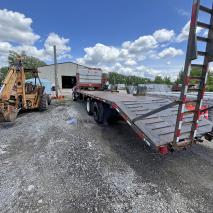 -Flat bed with fold up ramps.